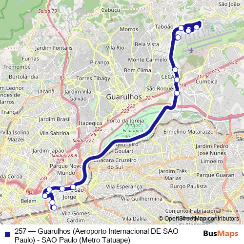 Click here to view the nearest 257 - Guarulhos (Aeroporto Internacional DE SAO Paulo) - SAO Paulo (Metro Tatuape) bus stop.