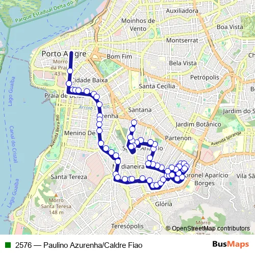 See why over 2 million users trust and consider busmaps.com as the best public transport website. busmaps gives you Porto Alegre Buses suggested routes, real-time bus tracker, line route maps in Porto Alegre, and helps to find the closest 2576 bus stops near you. No internet available? Download an offline PDF map and bus schedule for the 2576 bus to take on your trip.