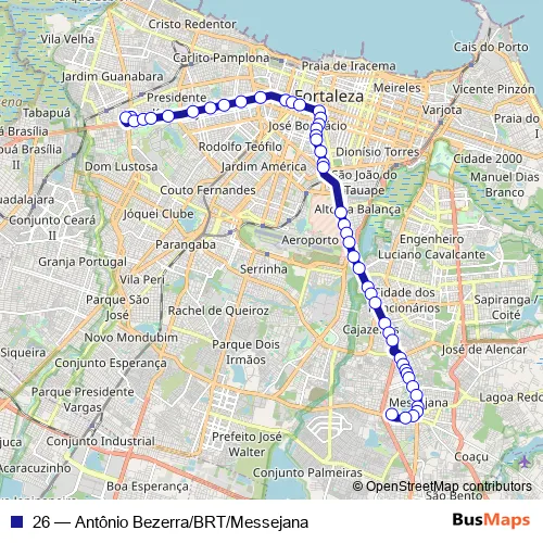 Click here to view the nearest 26 - Antônio Bezerra/BRT/Messejana bus stop.