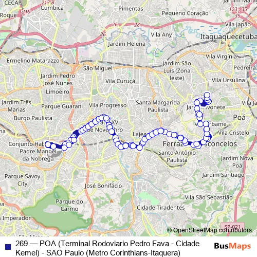 Click here to view the nearest 269 - POA (Terminal Rodoviario Pedro Fava - Cidade Kemel) - SAO Paulo (Metro Corinthians-Itaquera) bus stop.