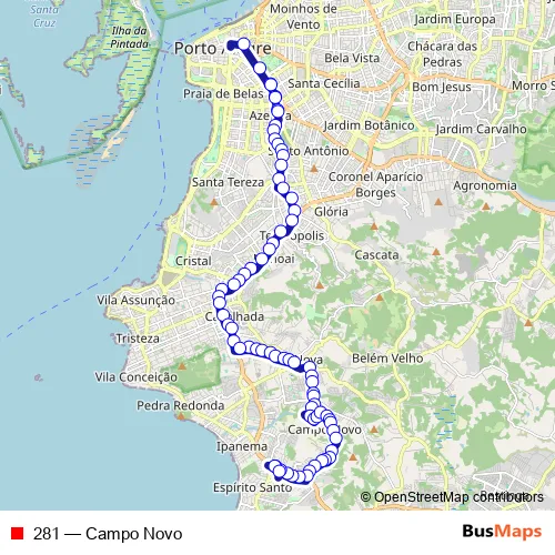 Bus 281 - Campo Novo in Porto Alegre: Stops & Timetable
