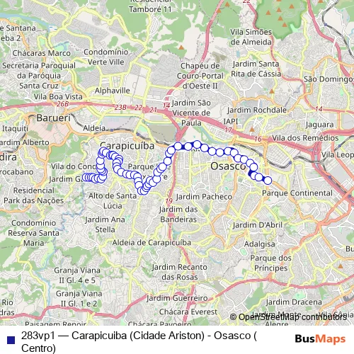 Click here to view the nearest 283vp1 - Carapicuiba (Cidade Ariston) - Osasco (Centro) bus stop.