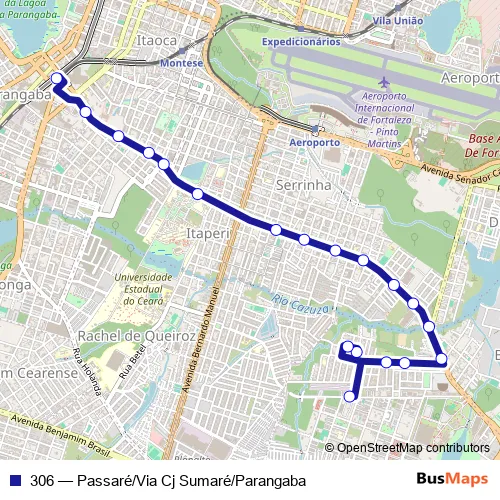 See why over 2 million users trust and consider busmaps.com as the best public transport website. busmaps gives you Fortaleza Buses suggested routes, real-time bus tracker, line route maps in Fortaleza, and helps to find the closest 306 bus stops near you. No internet available? Download an offline PDF map and bus schedule for the 306 bus to take on your trip.