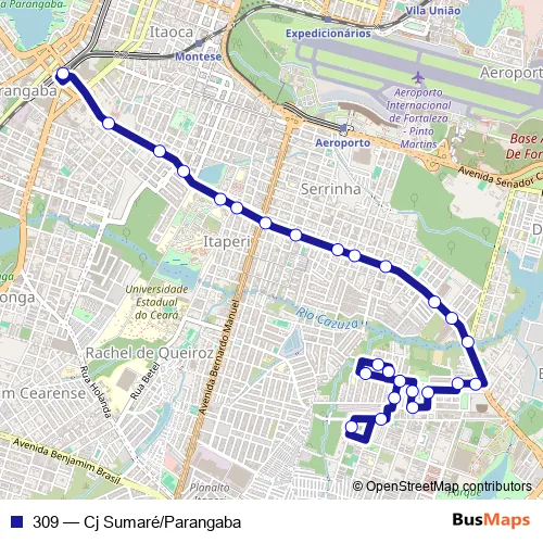 See why over 2 million users trust and consider busmaps.com as the best public transport website. busmaps gives you Fortaleza Buses suggested routes, real-time bus tracker, line route maps in Fortaleza, and helps to find the closest 309 bus stops near you. No internet available? Download an offline PDF map and bus schedule for the 309 bus to take on your trip.