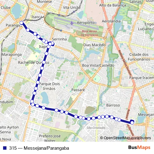 See why over 2 million users trust and consider busmaps.com as the best public transport website. busmaps gives you Fortaleza Buses suggested routes, real-time bus tracker, line route maps in Fortaleza, and helps to find the closest 315 bus stops near you. No internet available? Download an offline PDF map and bus schedule for the 315 bus to take on your trip.