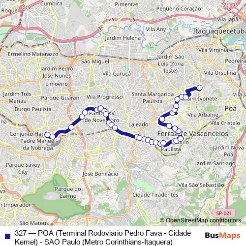 Bus 327 - POA (Terminal Rodoviario Pedro Fava - Cidade Kemel) - SAO Paulo (Metro Corinthians-Itaquera) Schedule in Sao Paulo