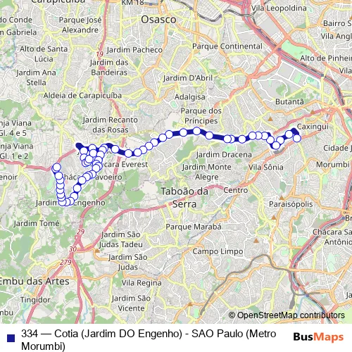 Bus 334 - Cotia (Jardim DO Engenho) - SAO Paulo (Metro Morumbi) Schedule in Taboao da Serra