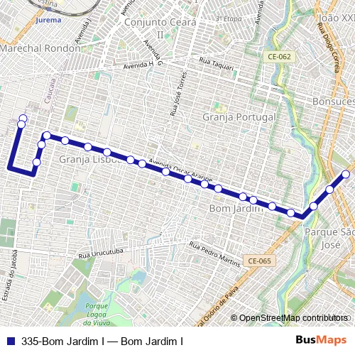 See why over 2 million users trust and consider busmaps.com as the best public transport website. busmaps gives you Fortaleza Buses suggested routes, real-time bus tracker, line route maps in Fortaleza, and helps to find the closest 335-Bom Jardim I bus stops near you. No internet available? Download an offline PDF map and bus schedule for the 335-Bom Jardim I bus to take on your trip.