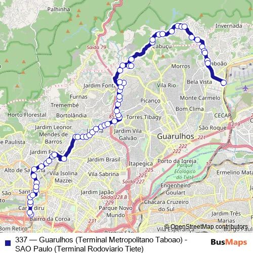 Click here to view the nearest 337 - Guarulhos (Terminal Metropolitano Taboao) - SAO Paulo (Terminal Rodoviario Tiete) bus stop.