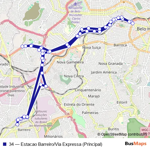 See why over 2 million users trust and consider busmaps.com as the best public transport website. busmaps gives you Belo Horizonte Buses suggested routes, real-time bus tracker, line route maps in Belo Horizonte, and helps to find the closest 34 bus stops near you. No internet available? Download an offline PDF map and bus schedule for the 34 bus to take on your trip.