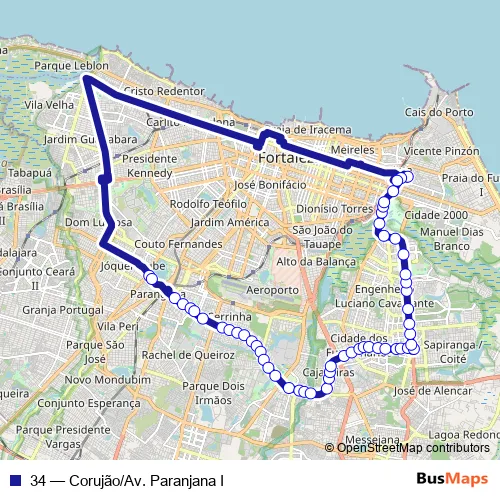 See why over 2 million users trust and consider busmaps.com as the best public transport website. busmaps gives you Fortaleza Buses suggested routes, real-time bus tracker, line route maps in Fortaleza, and helps to find the closest 34 bus stops near you. No internet available? Download an offline PDF map and bus schedule for the 34 bus to take on your trip.