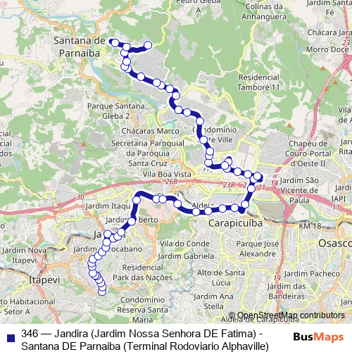 Click here to view the nearest 346 - Jandira (Jardim Nossa Senhora DE Fatima) - Santana DE Parnaiba (Terminal Rodoviario Alphaville) bus stop.