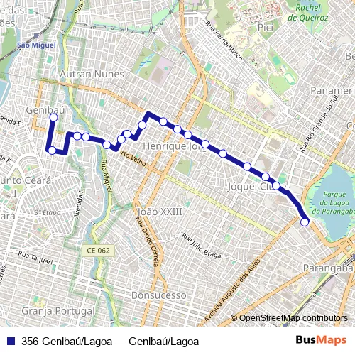 See why over 2 million users trust and consider busmaps.com as the best public transport website. busmaps gives you Fortaleza Buses suggested routes, real-time bus tracker, line route maps in Fortaleza, and helps to find the closest 356-Genibaú/Lagoa bus stops near you. No internet available? Download an offline PDF map and bus schedule for the 356-Genibaú/Lagoa bus to take on your trip.
