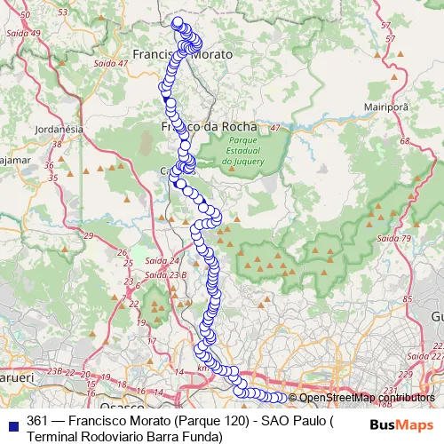 Click here to view the nearest 361 - Francisco Morato (Parque 120) - SAO Paulo (Terminal Rodoviario Barra Funda) bus stop.