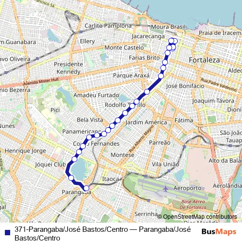 See why over 2 million users trust and consider busmaps.com as the best public transport website. busmaps gives you Fortaleza Buses suggested routes, real-time bus tracker, line route maps in Fortaleza, and helps to find the closest 371-Parangaba/José Bastos/Centro bus stops near you. No internet available? Download an offline PDF map and bus schedule for the 371-Parangaba/José Bastos/Centro bus to take on your trip.