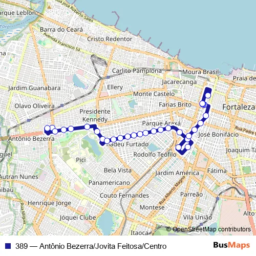 Click here to view the nearest 389 - Antônio Bezerra/Jovita Feitosa/Centro bus stop.
