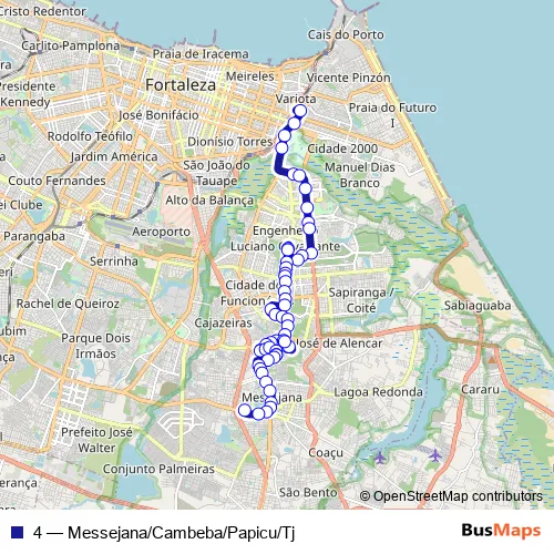 See why over 2 million users trust and consider busmaps.com as the best public transport website. busmaps gives you Fortaleza Buses suggested routes, real-time bus tracker, line route maps in Fortaleza, and helps to find the closest 4 bus stops near you. No internet available? Download an offline PDF map and bus schedule for the 4 bus to take on your trip.