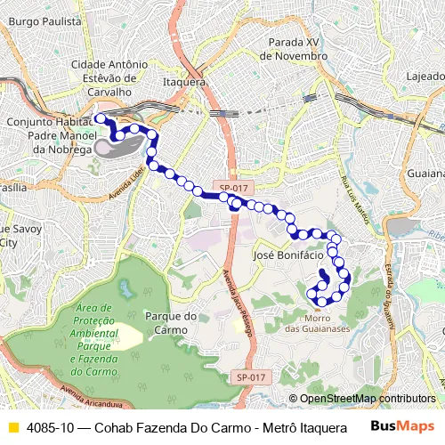 Click here to view the nearest 4085-10 - Cohab Fazenda Do Carmo - Metrô Itaquera bus stop.
