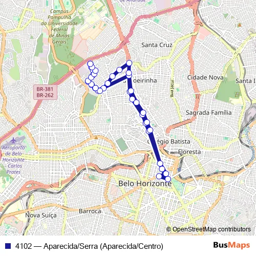See why over 2 million users trust and consider busmaps.com as the best public transport website. busmaps gives you Belo Horizonte Buses suggested routes, real-time bus tracker, line route maps in Belo Horizonte, and helps to find the closest 4102 bus stops near you. No internet available? Download an offline PDF map and bus schedule for the 4102 bus to take on your trip.
