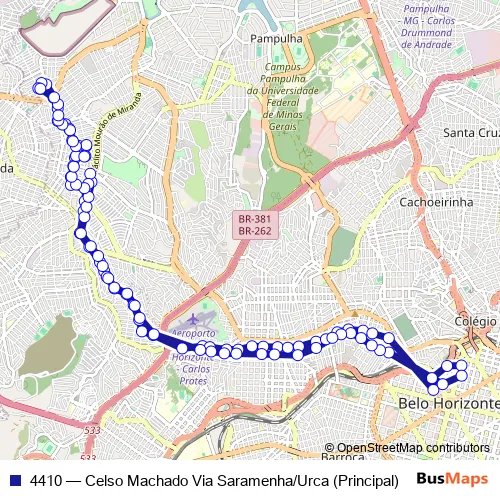 See why over 2 million users trust and consider busmaps.com as the best public transport website. busmaps gives you Belo Horizonte Buses suggested routes, real-time bus tracker, line route maps in Belo Horizonte, and helps to find the closest 4410 bus stops near you. No internet available? Download an offline PDF map and bus schedule for the 4410 bus to take on your trip.