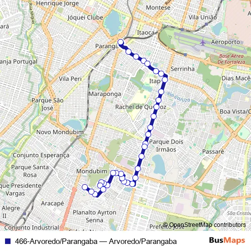 Additional information: 466-Arvoredo/Parangaba has 34 stops and the total trip duration for this route is approximately 45 minutes.
