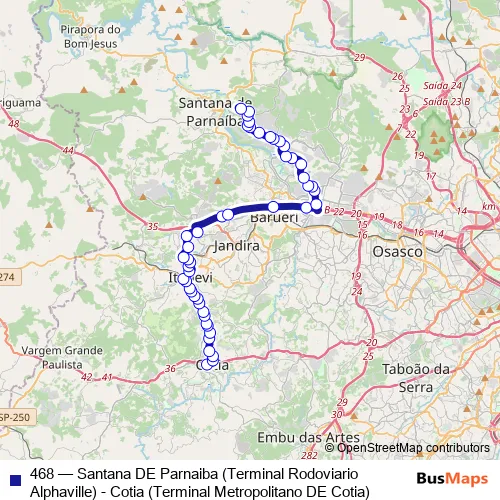 Bus 468 - Santana DE Parnaiba (Terminal Rodoviario Alphaville) - Cotia (Terminal Metropolitano DE Cotia): Full Schedule in Carapicuiba