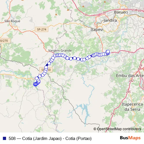 Bus 508 - Cotia (Jardim Japao) - Cotia (Portao): Full Schedule in Vargem Grande Paulista