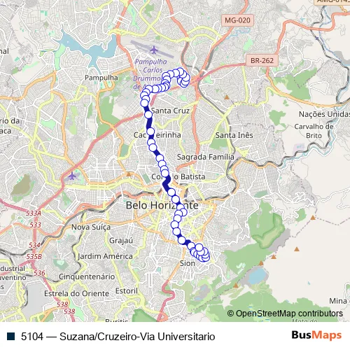 See why over 2 million users trust and consider busmaps.com as the best public transport website. busmaps gives you Belo Horizonte Buses suggested routes, real-time bus tracker, line route maps in Belo Horizonte, and helps to find the closest 5104 bus stops near you. No internet available? Download an offline PDF map and bus schedule for the 5104 bus to take on your trip.