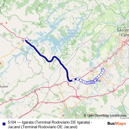 Click here to view the nearest 5104 - Igarata (Terminal Rodoviario DE Igarata) - Jacarei (Terminal Rodoviario DE Jacarei) bus stop.