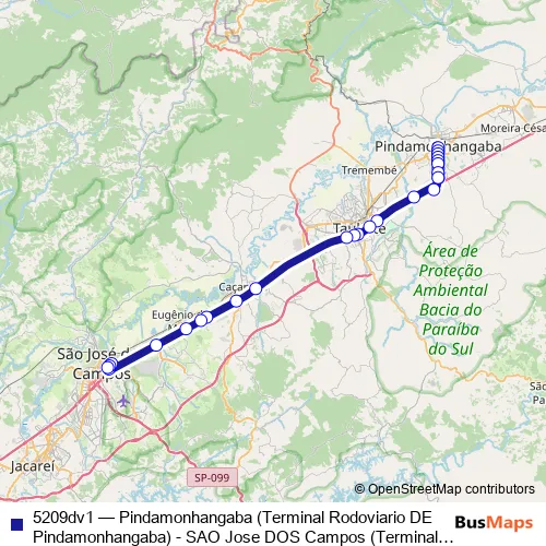 Services on the 5209dv1 - Pindamonhangaba (Terminal Rodoviario DE Pindamonhangaba) - SAO Jose DOS Campos (Terminal Rodoviario Frederico Ozanam) bus start at 05:15 on Monday, Tuesday, Wednesday, Thursday, Friday.