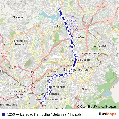 See why over 2 million users trust and consider busmaps.com as the best public transport website. busmaps gives you Belo Horizonte Buses suggested routes, real-time bus tracker, line route maps in Belo Horizonte, and helps to find the closest 5250 bus stops near you. No internet available? Download an offline PDF map and bus schedule for the 5250 bus to take on your trip.