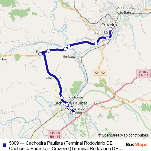 Click here to view the nearest 5309 - Cachoeira Paulista (Terminal Rodoviario DE Cachoeira Paulista) - Cruzeiro (Terminal Rodoviario DE Cruzeiro) bus stop.