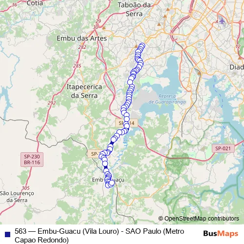 Click here to view the nearest 563 - Embu-Guacu (Vila Louro) - SAO Paulo (Metro Capao Redondo) bus stop.