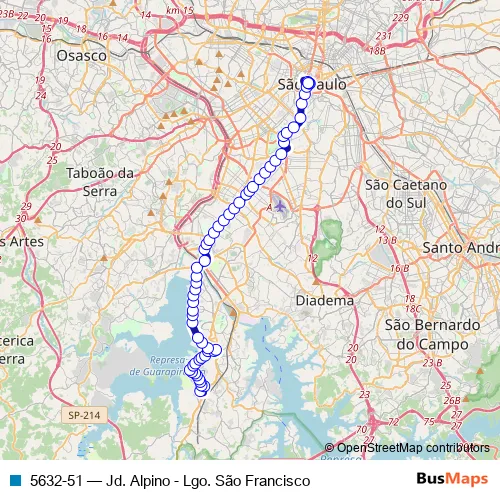 Bus 5632-51 - Jd. Alpino - Lgo. São Francisco in Sao Paulo: Stops & Timetable