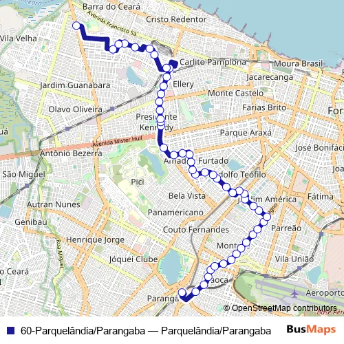 See why over 2 million users trust and consider busmaps.com as the best public transport website. busmaps gives you Fortaleza Buses suggested routes, real-time bus tracker, line route maps in Fortaleza, and helps to find the closest 60-Parquelândia/Parangaba bus stops near you. No internet available? Download an offline PDF map and bus schedule for the 60-Parquelândia/Parangaba bus to take on your trip.