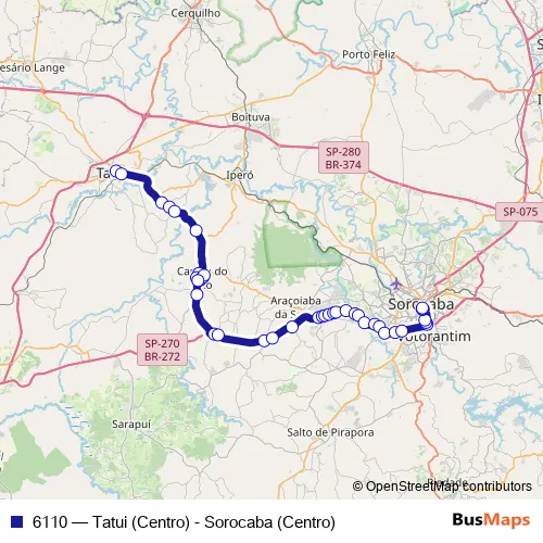 See why over 2 million users trust and consider busmaps.com as the best public transport website. busmaps gives you Sorocaba Buses suggested routes, real-time bus tracker, line route maps in Sorocaba, and helps to find the closest 6110 bus stops near you. No internet available? Download an offline PDF map and bus schedule for the 6110 bus to take on your trip.