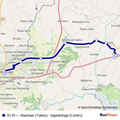 Bus 6118 - Alambari (Tatetu) - Itapetininga (Centro) Schedule in Itapetininga