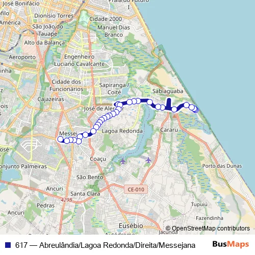 Click here to view the nearest 617 - Abreulândia/Lagoa Redonda/Direita/Messejana bus stop.