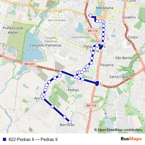 See why over 2 million users trust and consider busmaps.com as the best public transport website. busmaps gives you Fortaleza Buses suggested routes, real-time bus tracker, line route maps in Fortaleza, and helps to find the closest 622-Pedras Ii bus stops near you. No internet available? Download an offline PDF map and bus schedule for the 622-Pedras Ii bus to take on your trip.