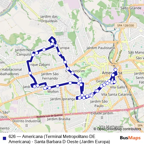 Bus 626 - Americana (Terminal Metropolitano DE Americana) - Santa Barbara D Oeste (Jardim Europa) Schedule in Sumare