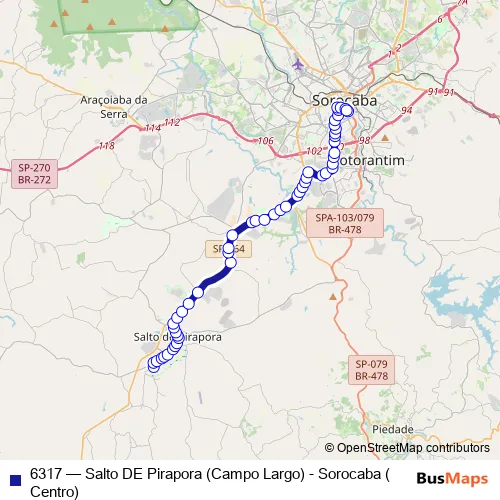 See why over 2 million users trust and consider busmaps.com as the best public transport website. busmaps gives you Sorocaba Buses suggested routes, real-time bus tracker, line route maps in Sorocaba, and helps to find the closest 6317 bus stops near you. No internet available? Download an offline PDF map and bus schedule for the 6317 bus to take on your trip.