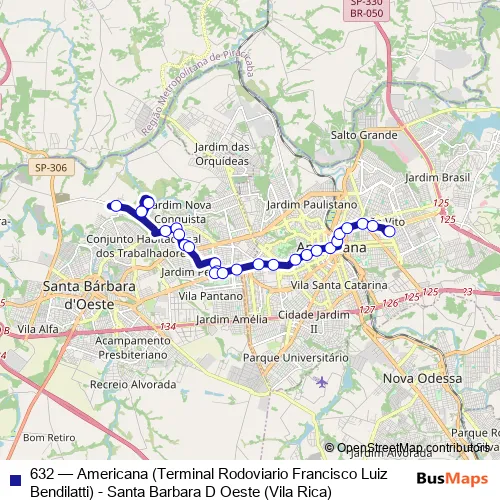 Bus 632 - Americana (Terminal Rodoviario Francisco Luiz Bendilatti) - Santa Barbara D Oeste (Vila Rica) Schedule in Sumare
