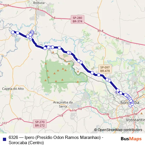 Bus 6326 - Ipero (Presidio Odon Ramos Maranhao) - Sorocaba (Centro) Schedule in Sorocaba