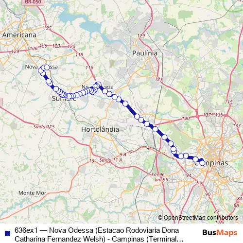 Click here to view the nearest 636ex1 - Nova Odessa (Estacao Rodoviaria Dona Catharina Fernandez Welsh) - Campinas (Terminal Metropolitano Prefeito Magalhaes Teixeira) bus stop.