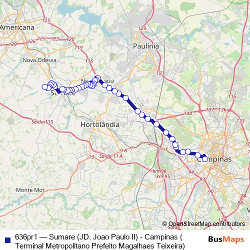 See why over 2 million users trust and consider busmaps.com as the best public transport website. busmaps gives you Sumare Buses suggested routes, real-time bus tracker, line route maps in Sumare, and helps to find the closest 636pr1 bus stops near you. No internet available? Download an offline PDF map and bus schedule for the 636pr1 bus to take on your trip.