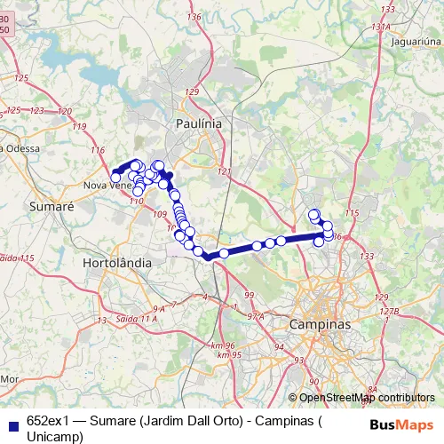 Bus 652ex1 - Sumare (Jardim Dall Orto) - Campinas (Unicamp) Schedule in Paulinia