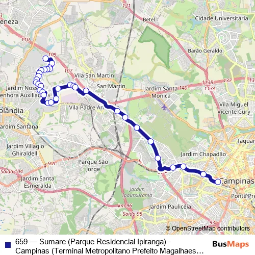 Click here to view the nearest 659 - Sumare (Parque Residencial Ipiranga) - Campinas (Terminal Metropolitano Prefeito Magalhaes Teixeira) bus stop.