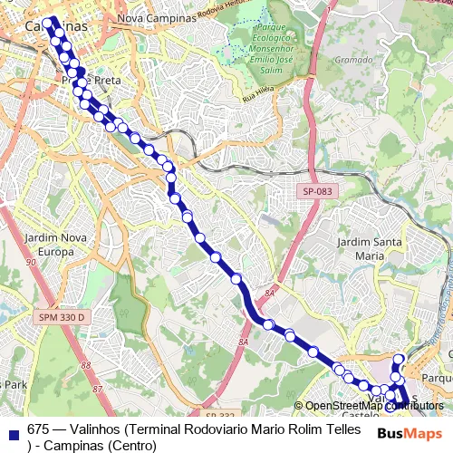 Bus 675 - Valinhos (Terminal Rodoviario Mario Rolim Telles) - Campinas (Centro): Full Schedule in Vinhedo