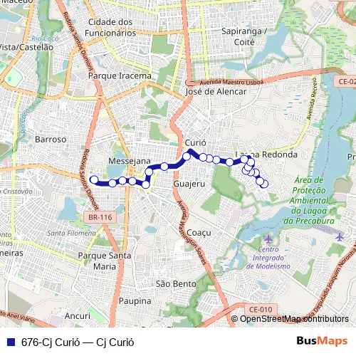 The first stop of the 676-Cj Curió bus route is RUA Luiza Guimarães, Sn and the last stop is Praça Terminal Messejana, Sn. 676-Cj Curió (Cj Curió) is operational during on weekdays.
