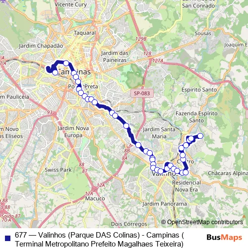 Click here to view the nearest 677 - Valinhos (Parque DAS Colinas) - Campinas (Terminal Metropolitano Prefeito Magalhaes Teixeira) bus stop.